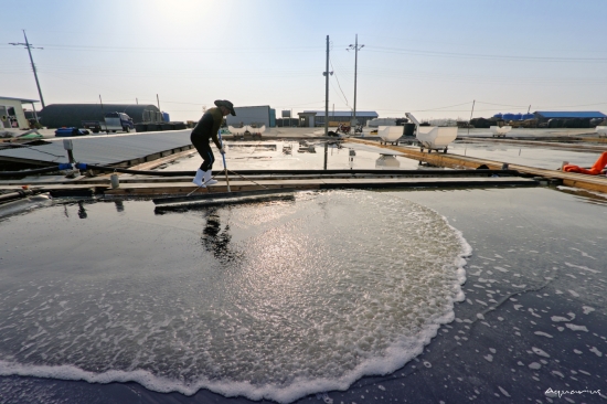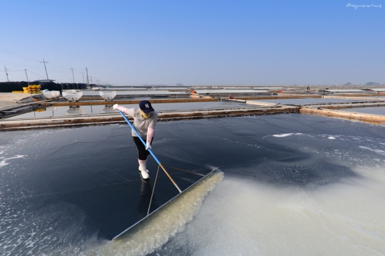 염전 소금 걷기.