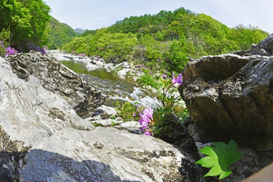 계곡에는 자생의 철쭉꽃이 한창이었습니다.