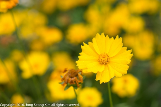 금계국과 그 위에 앉은 아주 작은 곤충과 거미등등 입니다.