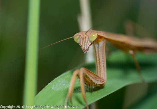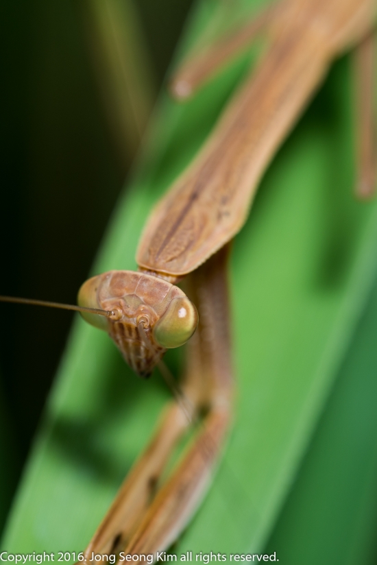 제가 다가가자 사마귀가 갑자기 엎드리더군요