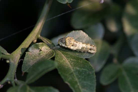 이른 아침 집 주위에 있는 탱자 나무에 있는 호랑나비 애벌레를 찍어 봤습니다.