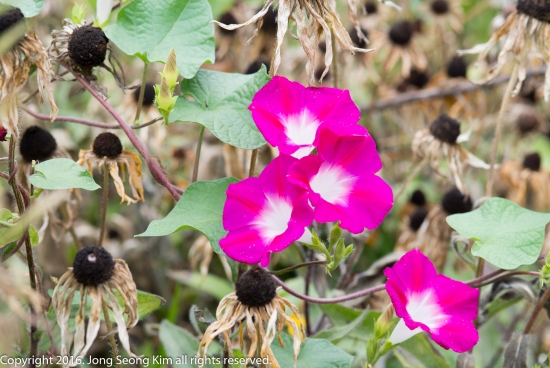 제가 사는 동네 길가에 핀 나팔꽃들입니다. 요즘 나팔꽃이 많이 보입니다.