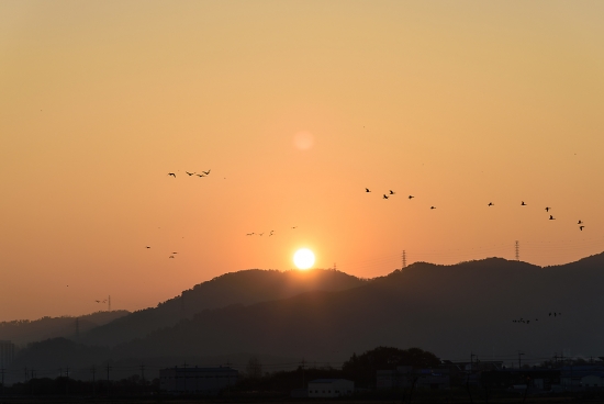 아침을 활기차게 나는 새들의 울음소리가