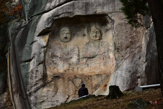괴산 원풍리 마애불좌상에서 마이불을 우러러 보며 수심가득한 촌로(村老)의 모습