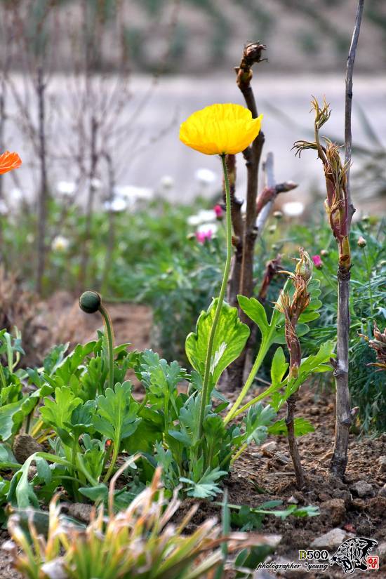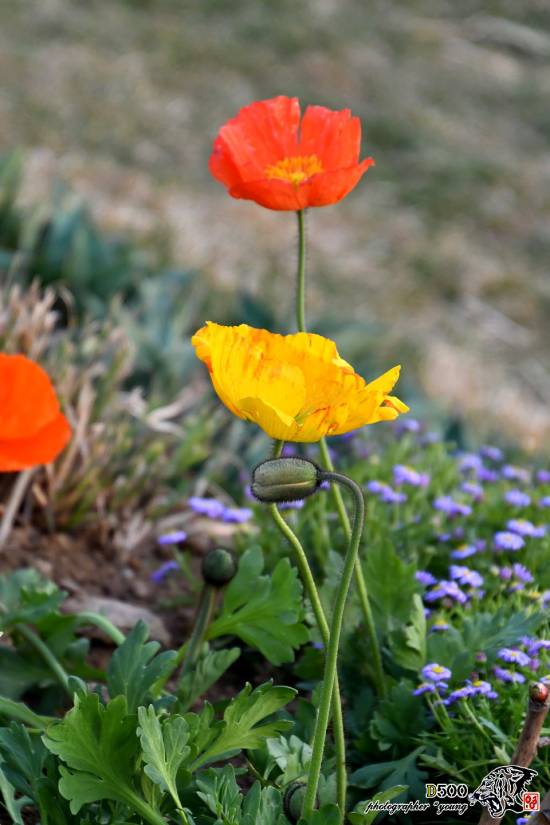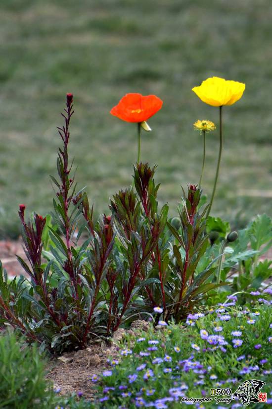 꽃밭에 예쁘게 핀 양귀비
