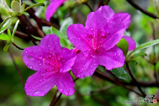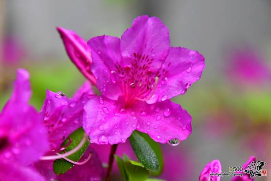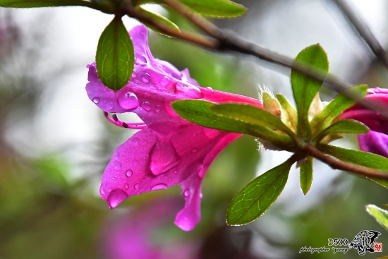 철쭉꽃 꽃잎에 빗방울