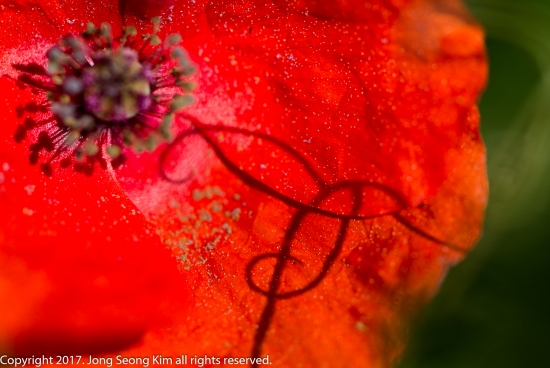 오월의 햇빛은 양귀비꽃잎에 서명을 남겼습니다.