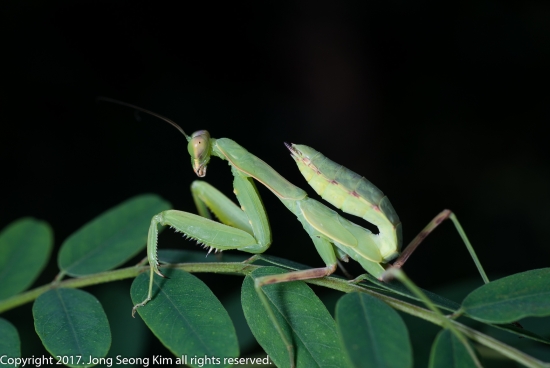 계족산 입구에서 사마귀 한마리를 만났는데 이놈은 아랫배가 불룩하더군요...