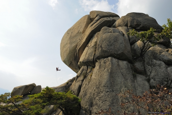 추석 연휴 마지막날 수락산 등산 중 하강바위에서 레펠로 하강하시는 분을 보면서