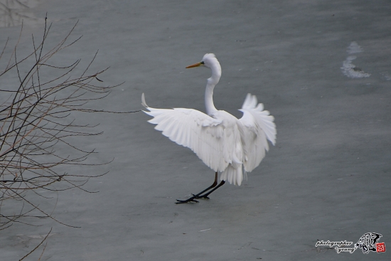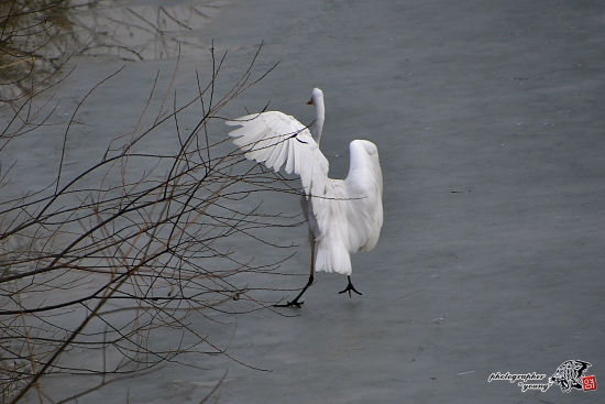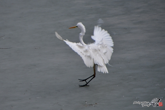 백로 착지 빙판이 미끄러워~