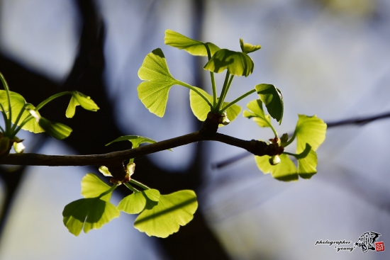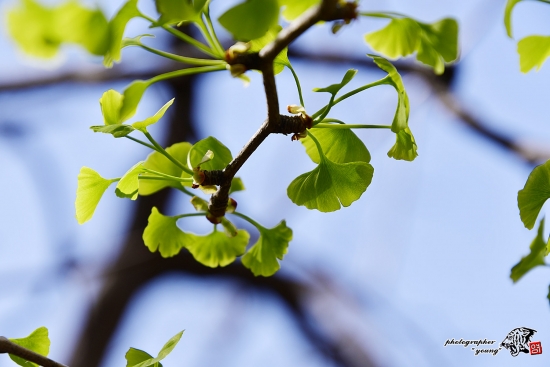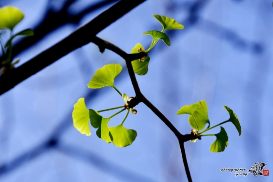 가로수 은행나무에 예쁜 아기 이파리