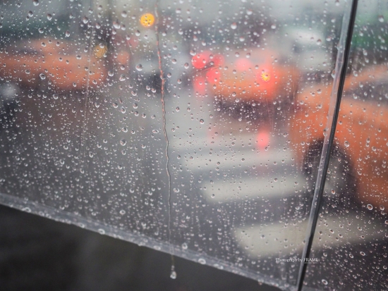 비오는날 투명우산을 쓰고