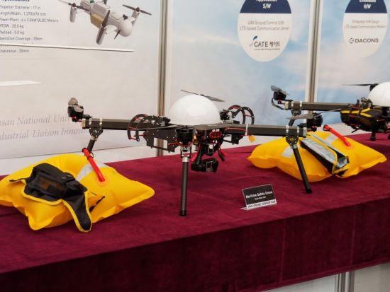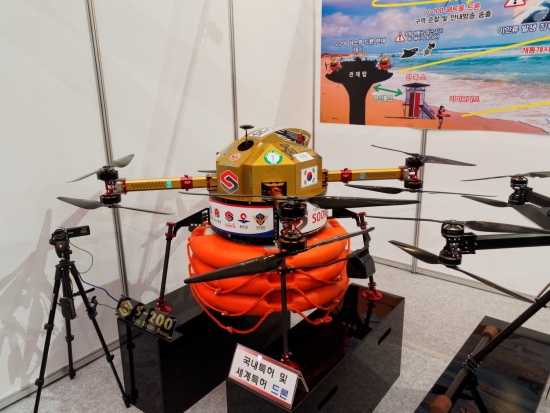 이건 부산대 시범사업단 시범비행에서 선보였던 구명보트 투하하던 그 드론입니다.