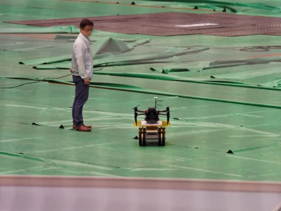 궤도차량에 실려서 들어오는 이 녀석은 LTE를 이용해서 와이파이 신호를 발생시켜주는 역할을 하는 드론입니다.