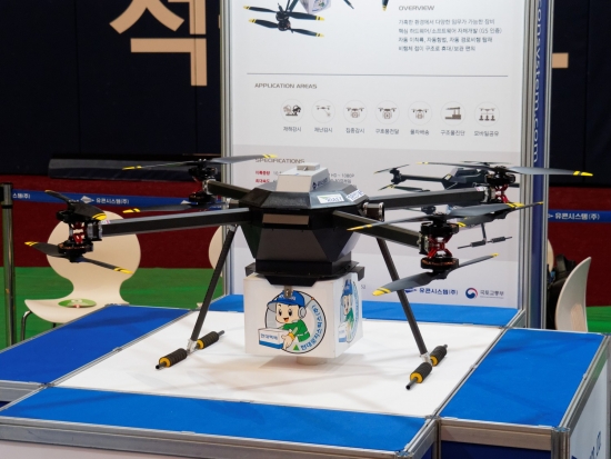 얘는 재난현장에 구호물품을 전달하는 역할을 하는 드론입니다.
