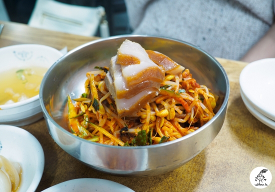 친구는 비빔국수를 시켰어요. 나중에 알게 된 사실인데, 원래 자매국수집은 고기국수보다 비빔국수가 유명하다고 하네요. 저는 고기국수를 시켰는데, 뭐 어쩌겠어요. 뺏어 먹었지. ^ㅡ^)v