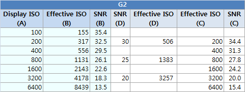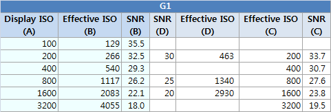 맨 마지막의 도표에서 보듯이, G1/G2에 사용된 센서는 NEX-5 대비 2/3 스탑 이상 노이즈가 많이