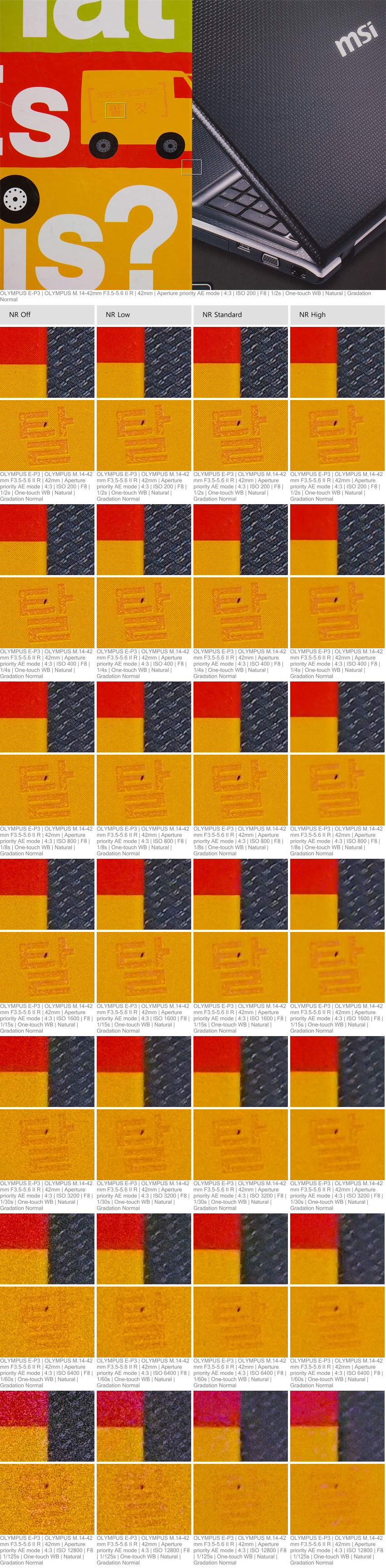 반복하여 말씀 드리지만, 이 테스트에 사용된 E-P3의 펌웨어 버전은 0.9입니다. 펌웨어 버전 0.9와 1.0 사이의 차이는 제품에 따라 클 수도 있고, 대동소이할 수도 있습니다. 그러니 정식 노이즈 비교는 후에 정식 리뷰를 하는 분들이 사용하게 될 펌웨어 버전 1.0 자료를 참고하시는 것이 바람직합니다. * 이 테스트는 팝코넷 포서즈 포럼과 SLR클럽 올림푸스 포럼에 함께 올라갑니다.
