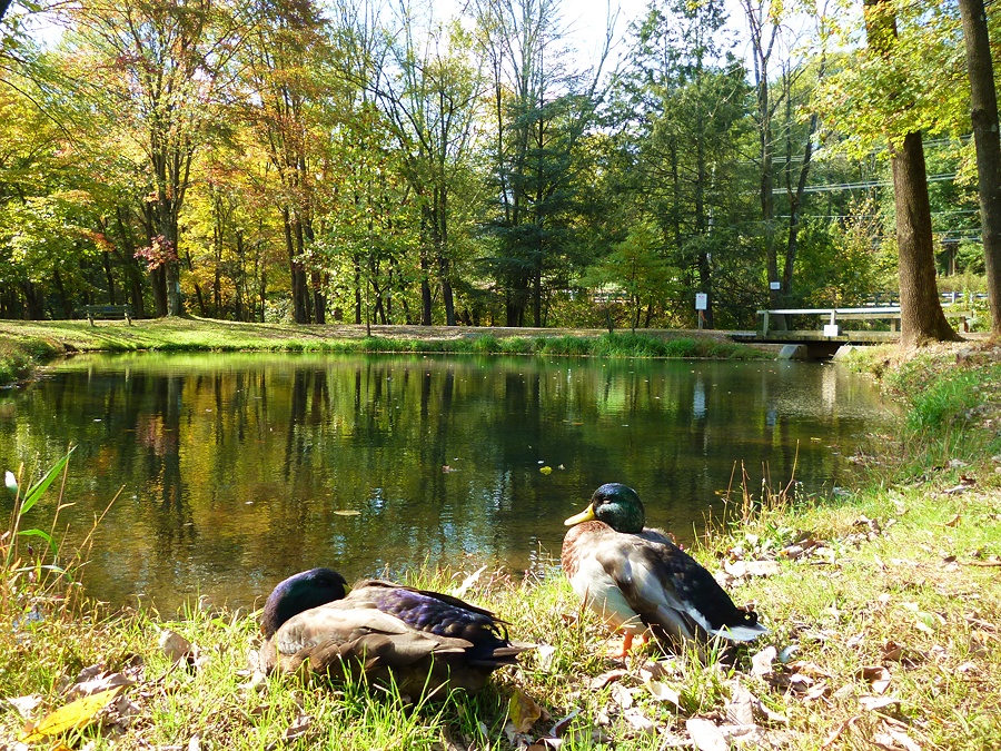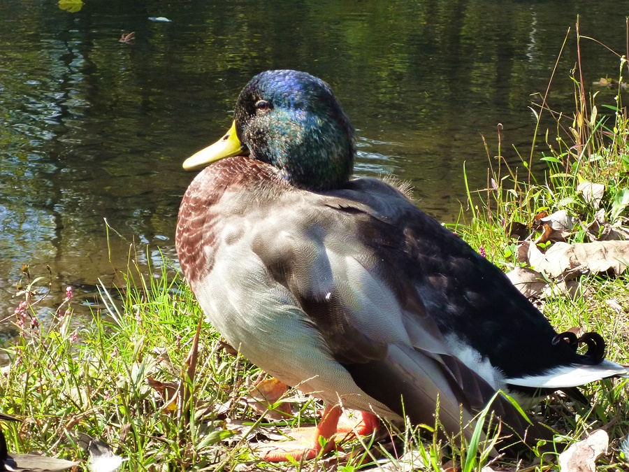 오리 두마리가 일광욕 하고있는데..