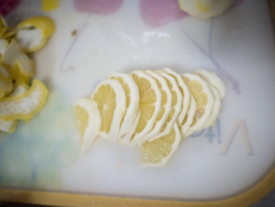 이번엔 저번하고 다르게.... 레몬 을 아주 얇게 썰어 봤습니다.
