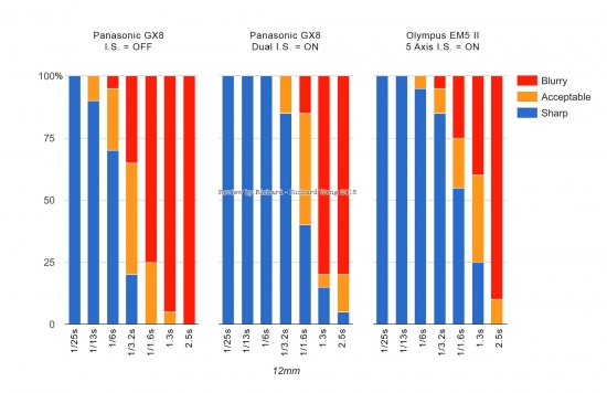 [DONGMIN]올림과 파나의 내장떨방은 방식이 다르니까요... Dual IS는 구조상 사진에서만 적용되긴 합니다만, 테스트 결과로 놓고보면 그래도 올림의 5축떨방에 잘 따라붙고 있다고 봅니다. (위의 테스트 결과로보면 12미리구간이나 140미리 구간에서 오히려 조금 더 나은 결과를 보이기도 합니다.)