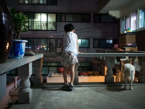산책 나갈려고 하는데.. 아들하고 멍뭉이가 뭘 보고 있네요???