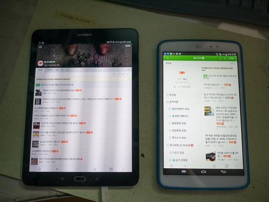 p.s 아들 지패드가 8.3 이고 탭이 9.7 인데.. 생각 보다 크기 차이가 있네요 .... 그런데.. 동영상 볼땐 상하 잘려나가서..