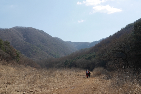 산 정상은 포기하고 일반도로로 걸어 내려왔습니다.