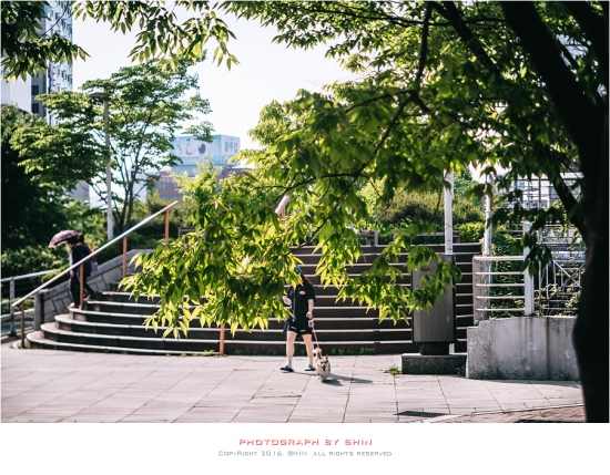 더운 오후 주인과 산책 나온 견공이 귀엽습니다.