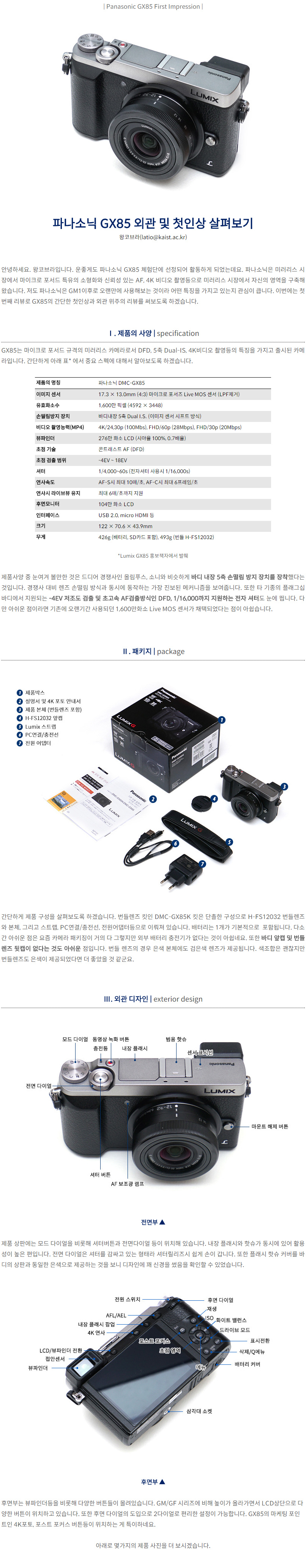 팝코넷은 아니지만 옆동네에서 GX85체험단으로 뽑혀서 이리저리 활동을 하고 있는데 첫번째 리뷰를 올려봅니다.