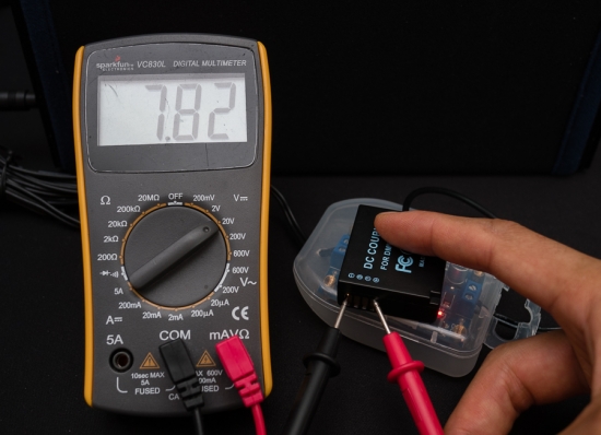 ▲ 카메라에 연결하기 전에, 안전을 위해 전압테스트를 해본다.