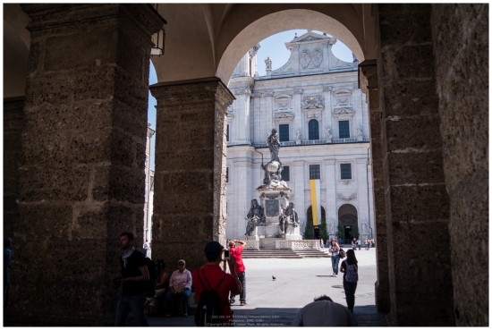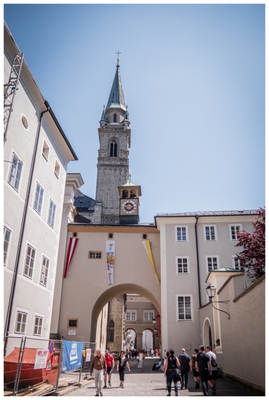 아치 아래를 지나며 Salzburger Dom 잘츠부르크 대성당이 모습을 드러냅니다.