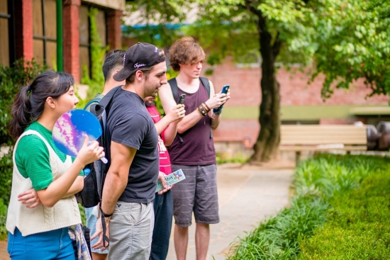 외국사람들이 뭔가를 보구 사진을 찍구 있습니다...