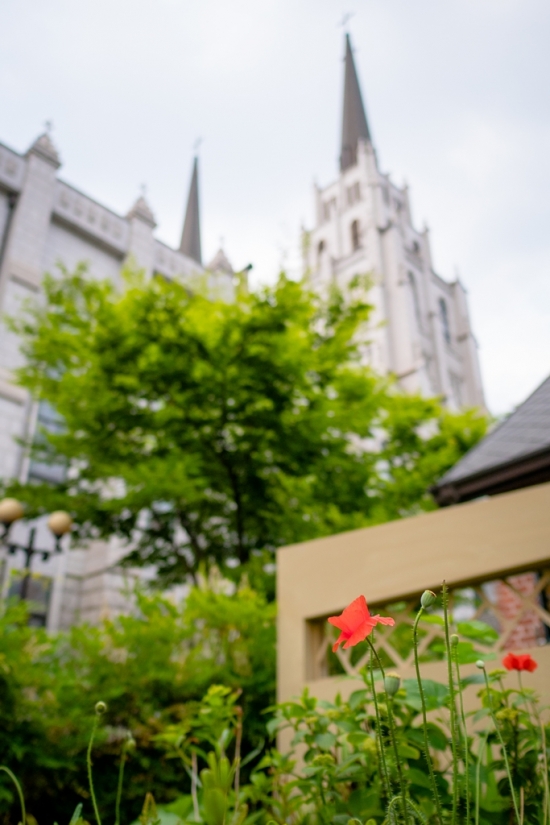 개양귀비꽃 배경에 보이눈건 제일교회 입니다...