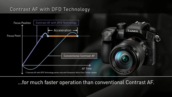 GX85는 DSLR의 위상차 방식과 비슷한 DFD(Depth From Defocus; 공간인식AF) 기술이 적용되어 있어서 컨트라스트 AF의 성능을 극한으로 끌어내고 있습니다. 위상차 AF 방식과는 달리 컨트라스트 AF는 렌즈 내부의 초점 렌즈를 어느 방향으로 움직여야 하는지 알 수가 없습니다. 그래서 위상차 AF방식에 비해 AF속도에서 손해를 보는 경우가 많고 컨트라스트 AF 특유의 워블링 현상(초점을 잡기 위해 화면이 울렁이는 현상)이 나타나게 됩니다. DFD는 이러한 위상차 AF와 비슷하게 초점 렌즈를 이동시킬 방향을 미리 알아낼 수 있는 기술이기 때문에 기존에도 매우 빠르게 동작하던 컨트라스트 AF를 더욱 빠르고 정확하게 할 수 있도록 도와줍니다. 이러한 기술을 통하여 다른 미러리스 카메라에서는 컨트라스트 AF만으로는 감히 따라올 수 없는 AF 성능을 구현하고 있지요.