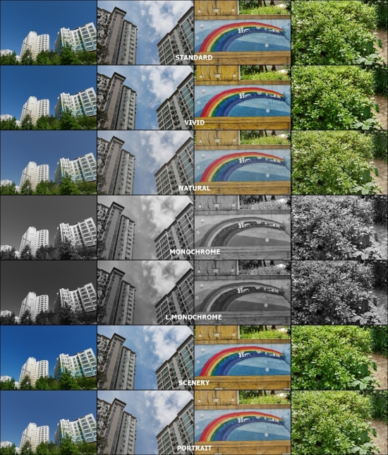 • - 풍경 모드는 표준 모드에 비해 컨트라스트와 채도가 강해집니다. 선명 모드와 비슷하지만 선명 모드 보다 컨트라스트가 조금 약하고 채도가 더 높습니다.