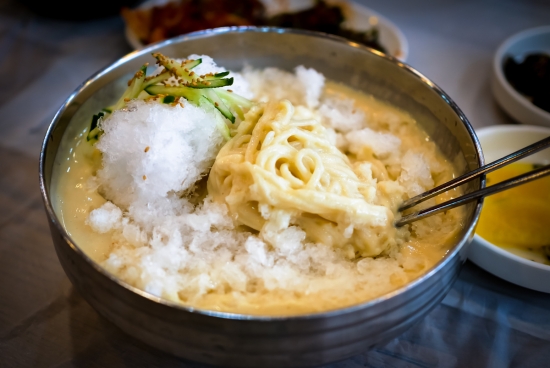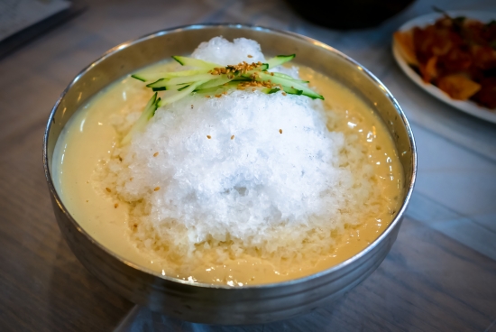 콩국수 위에 빙수를 얹어주네요.