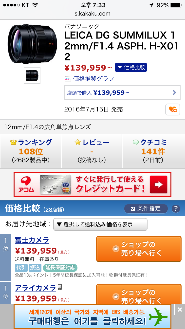 제목이 곧 내용.. 일본엔 이미 발매되어 물량이 있는 매장도 있고 주문후 대기해야 하는 경우도 있나 봅니다. 그나저나 국내출시되면 가격이 최소 130은 할 기세.. bhphoto에선 아직 프리오더만 받고 있습니다. 예상 배송개시 시점은 8월 중순인 모양입니다. 그런데 역시나 언제나처럼 파코는 조용하군요. ;; 사스가 이번에도 닌자마켓팅 내지 이순신장군마켓팅을 시전할 모양이죠? "내가 출시했다고 고객들에게 알리지 마라!" -_-;;;