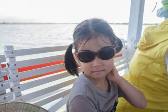 배를 타고 물 위를 달리니 강바람이 강하게 불어옵니다. 잠시나마 땀을 식히면서 휴식을 취하며 바깥 경치를 즐겨보네요. 서현이도 바람이 시원한가 봅니다. ㅎㅎ