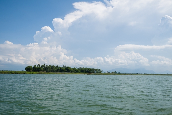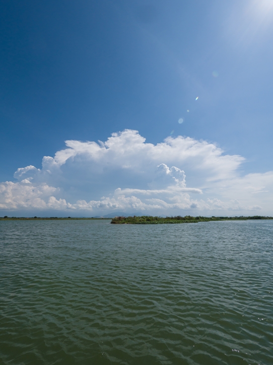 배를 타고 이동하기 시작합니다. 하늘과 구름과 강의 색깔이 묘하게 조화를 이룹니다.