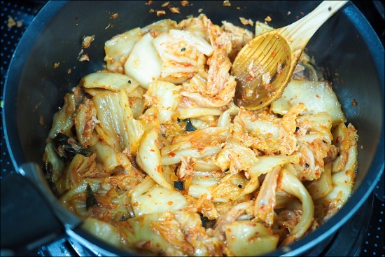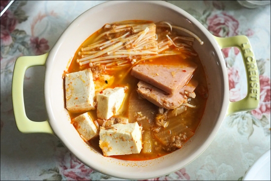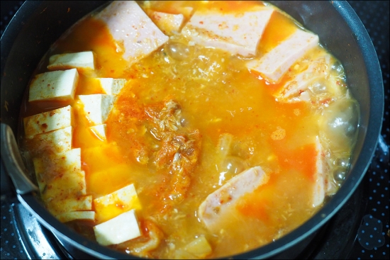 아내에게 배웠습니다. 김치찌개인데,, 부대찌개 향이 좀 나네요 ㅎㅎ