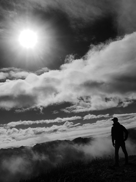 오르는 동안 좋았던 날씨가 다시 흐려집니다.