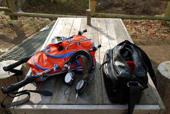 작은 배낭과 카메라 가방 하나...
