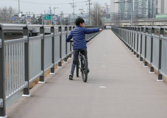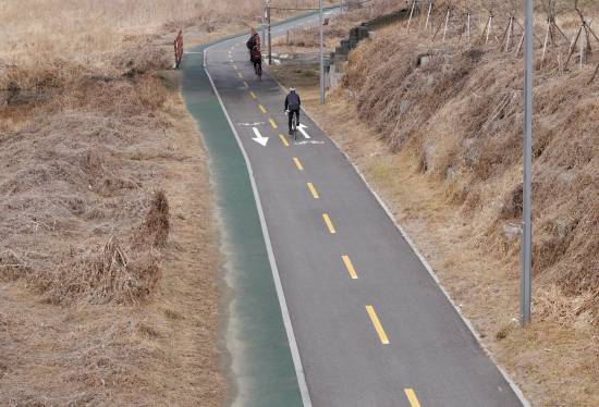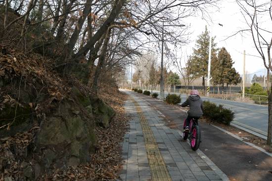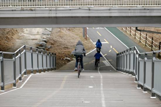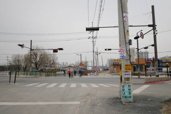 무단횡단 중인 라이더들 ,,, ,,, 저기는 가로 지르는 횡단보도가 없는데... 평소 차가 씽씽 다니는 코스입니다.