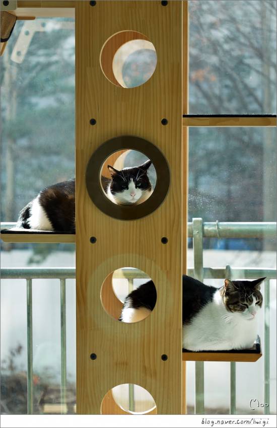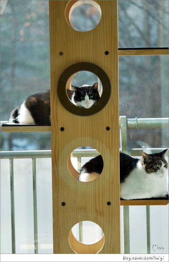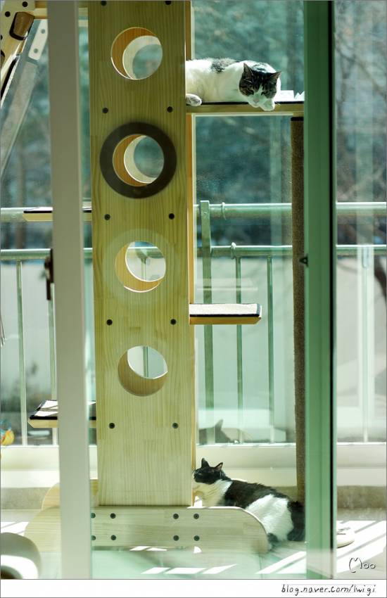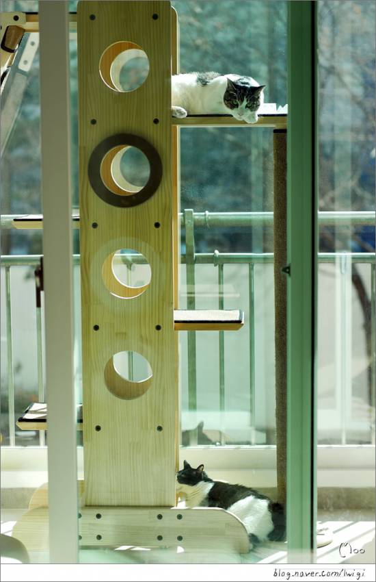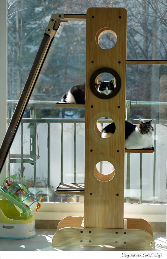 따스한 햇살이 있는 캣타워는 콩형제에게 천국..
