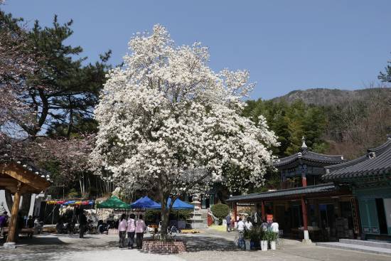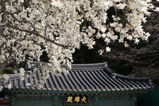 산사의 봄 목련곷 그늘 아래서~