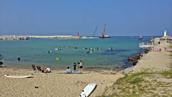 그리고 마지막 사진은 강릉 사천에 있는 바닷가에서 서핑 배우는 사람들