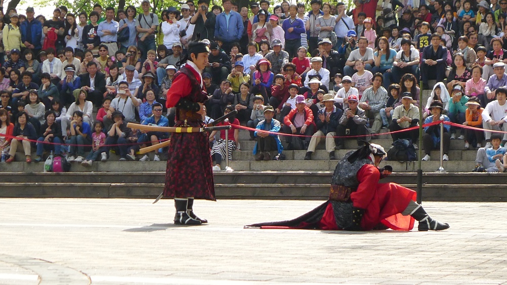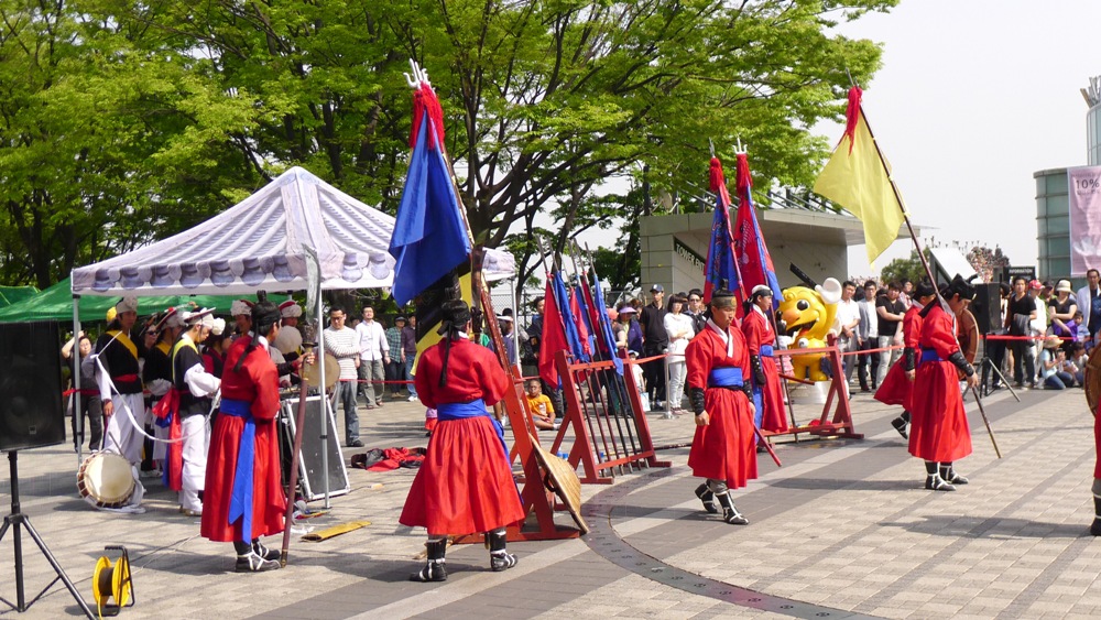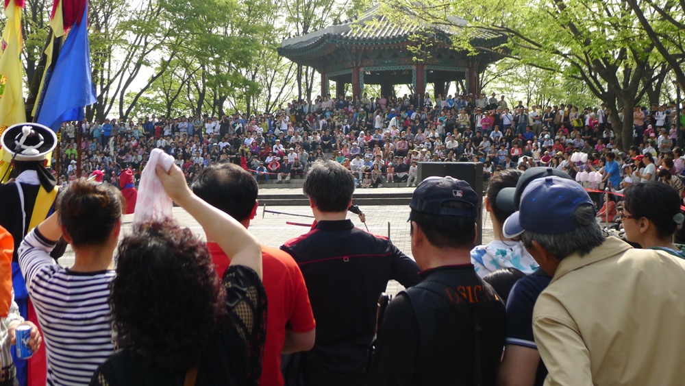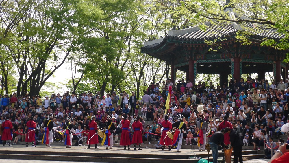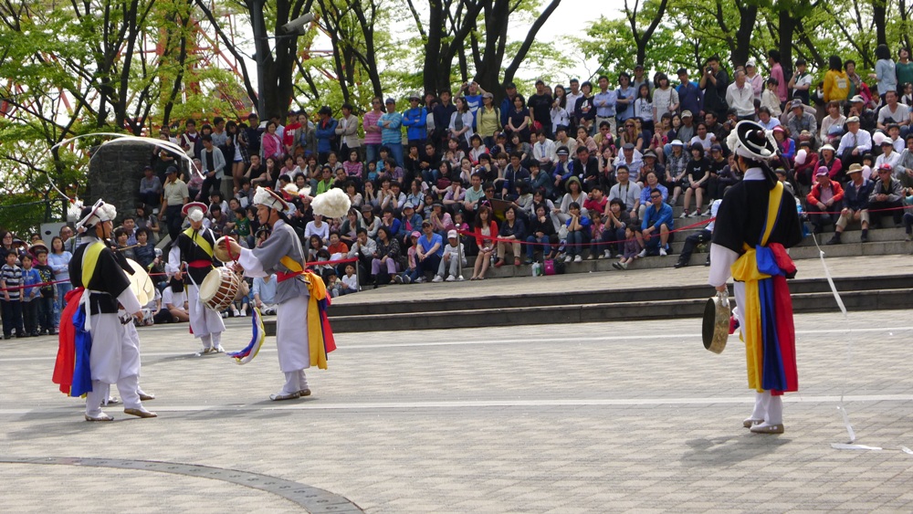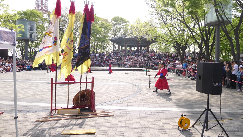 요즘 남산의 정상인 팔각정 앞에서 우리의 고유 전통인 사물놀이와 무술시범 공연을 하드군요!..