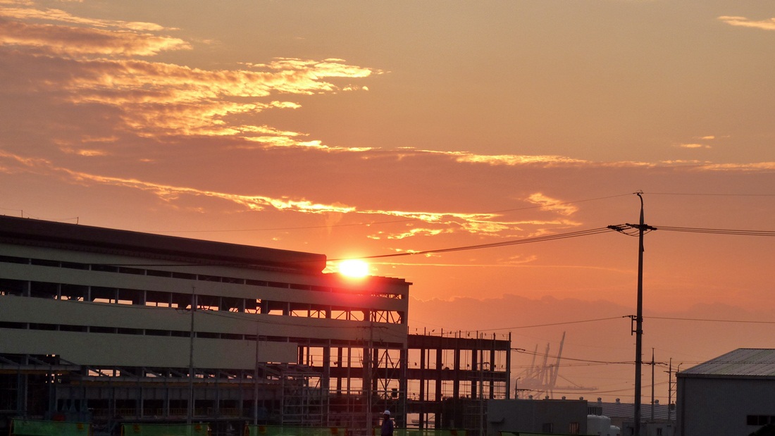신축 건물 사이로 떠 오르는 태양속에 희망이 보이드군요!..