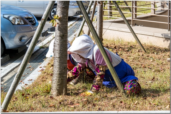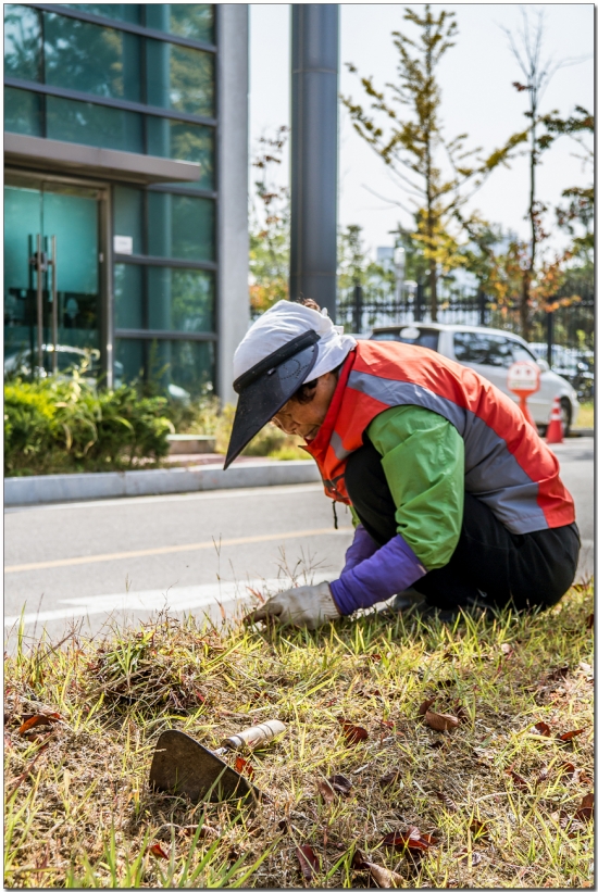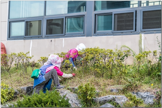 어르신들이 옹기종기 모여 제초작업을 하고 계시네요.